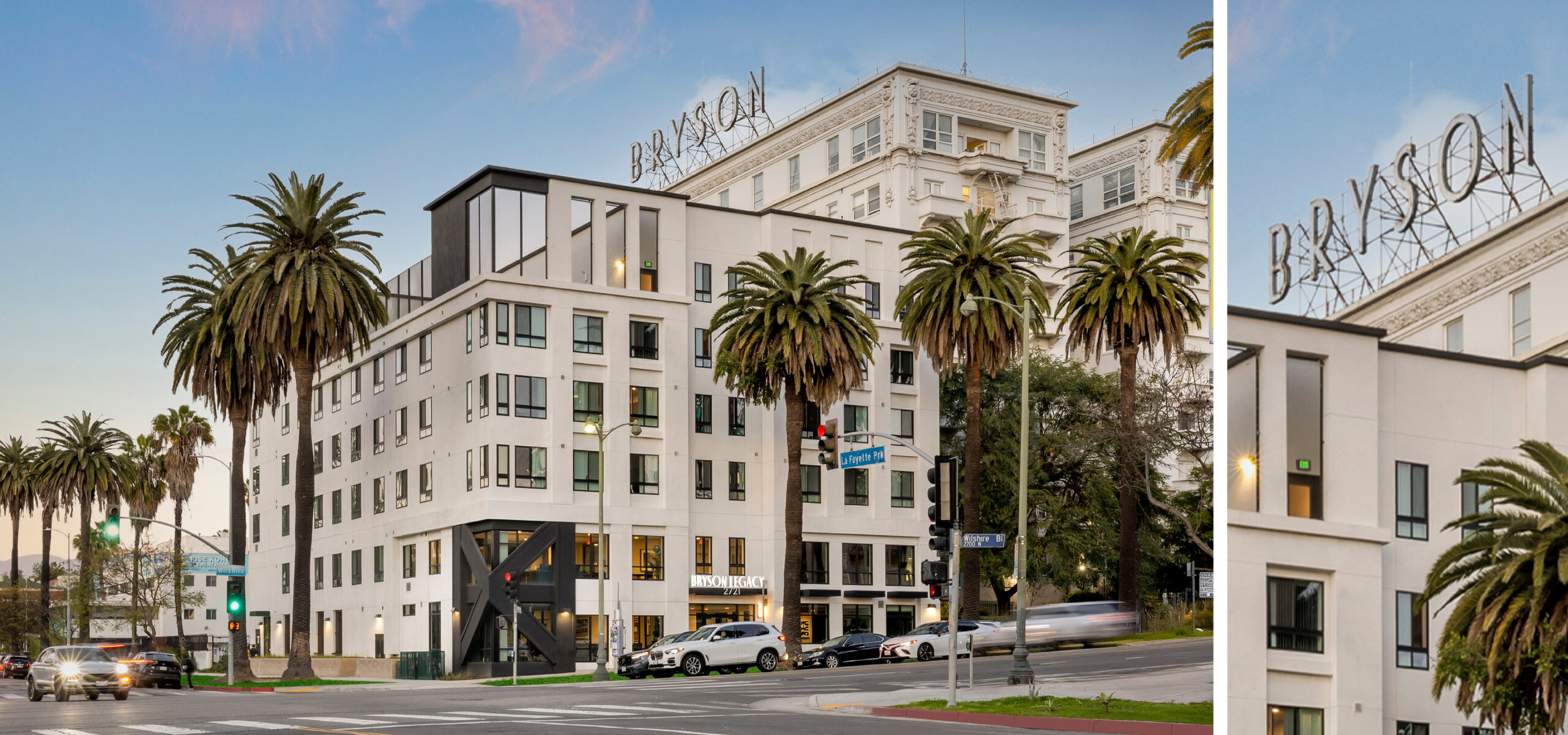Reviving the architectural spirit of LA’s Westlake district, this affordable supportive housing project expands access to permanent homes through a design that honors both legacy and community. The six-story building sits beside the historic Bryson Apartment Hotel, drawing from its Beaux Arts style while respecting its scale and massing to create a distinctive urban statement. The community offers 64 affordable homes prioritized for people experiencing homelessness, including units for those with mobility, hearing, or visual impairments—providing safe, stable housing for those most in need. It also includes 993 SF of support and counseling space, a ground-floor lobby and offices, plus a roof deck and elevated courtyards.