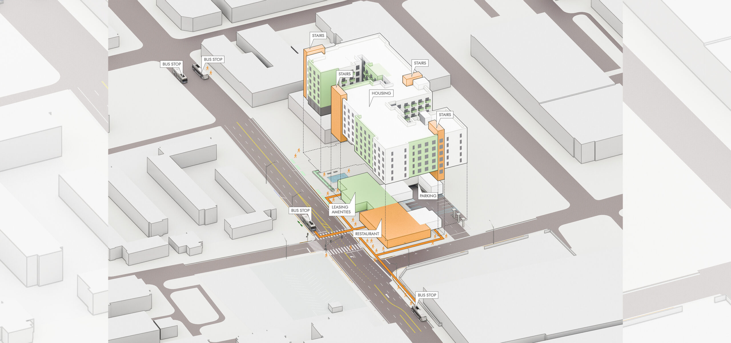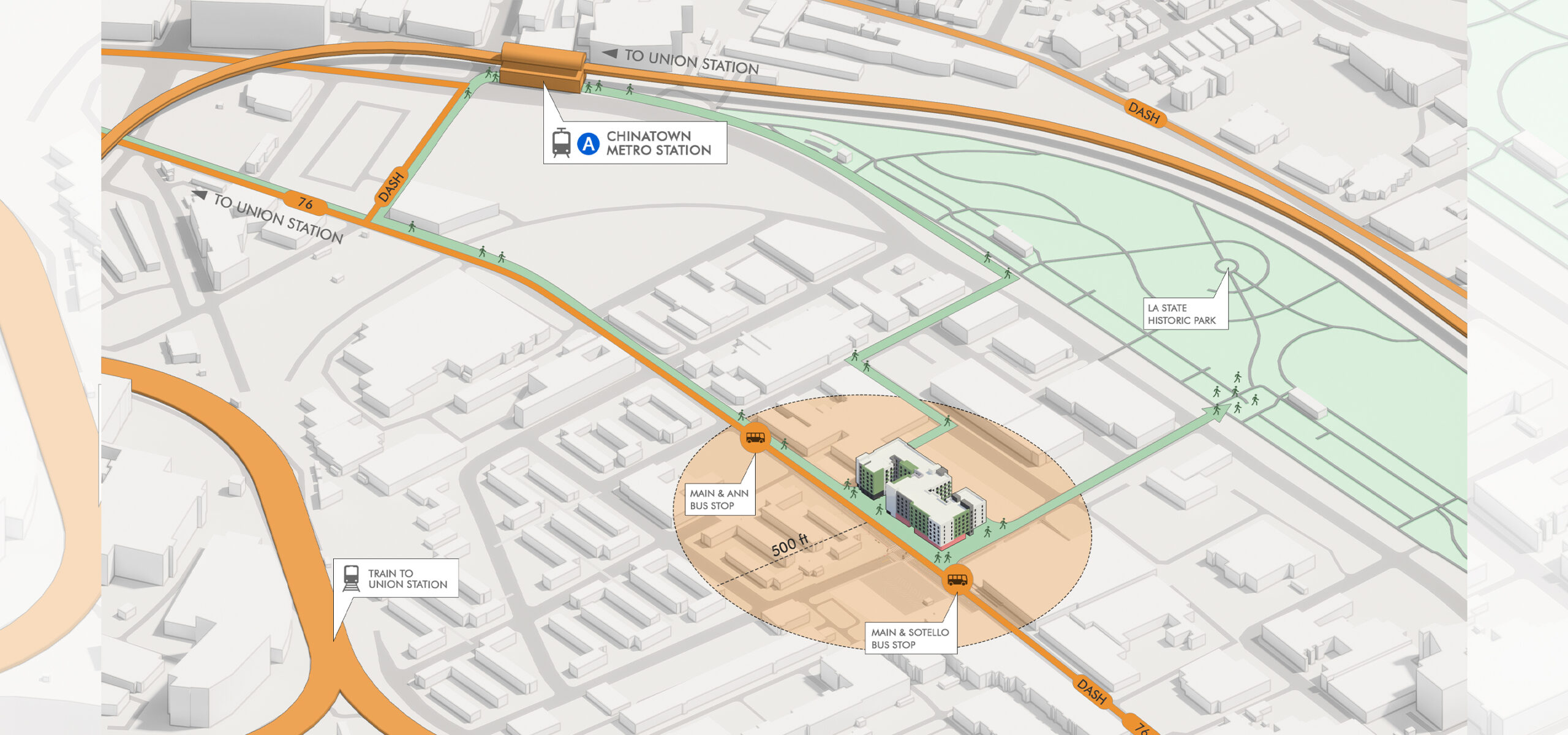 A reimagined commercial site will become a new workforce and affordable development, near downtown LA, the iconic Dodgers Stadium, and the preserved Los Angeles State Historic Park. The project was re-entitled by AO utilizing modular design and prefabricated construction methods, resulting in higher efficiency within the S-shape footprint that maximizes the unit count. The design discipline also allocates a 6,448 SF commercial component along the ground level in addition to an expansive roof deck and open courtyards. In accordance with the affordable housing bonus program, a percentage of affordable apartments will be set aside as low-income units.