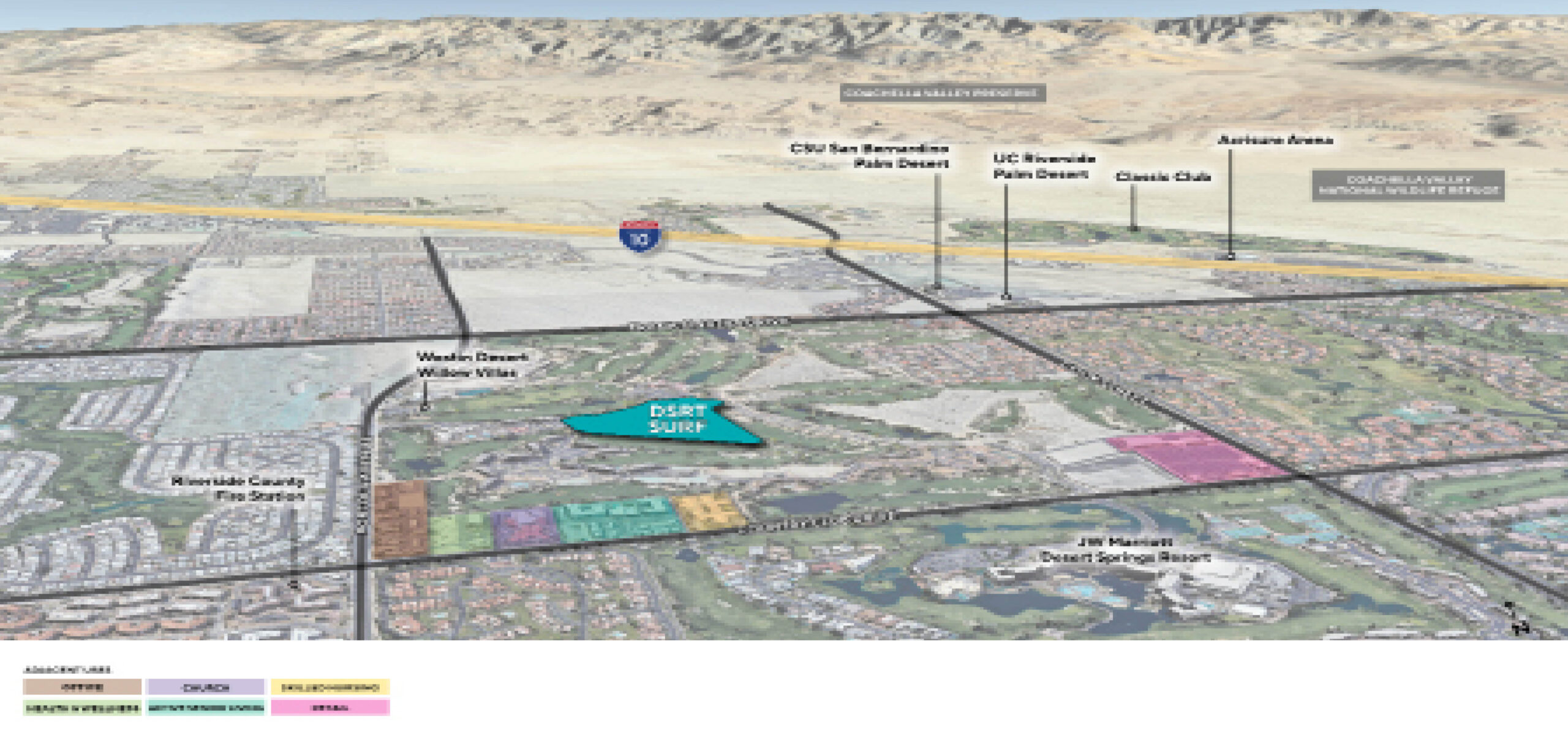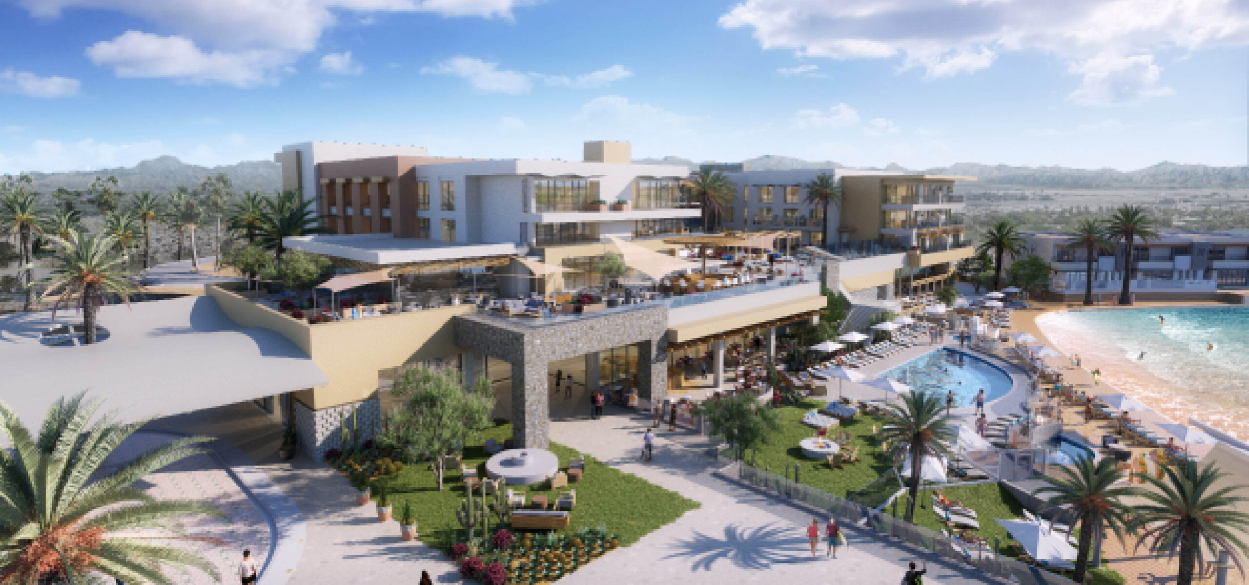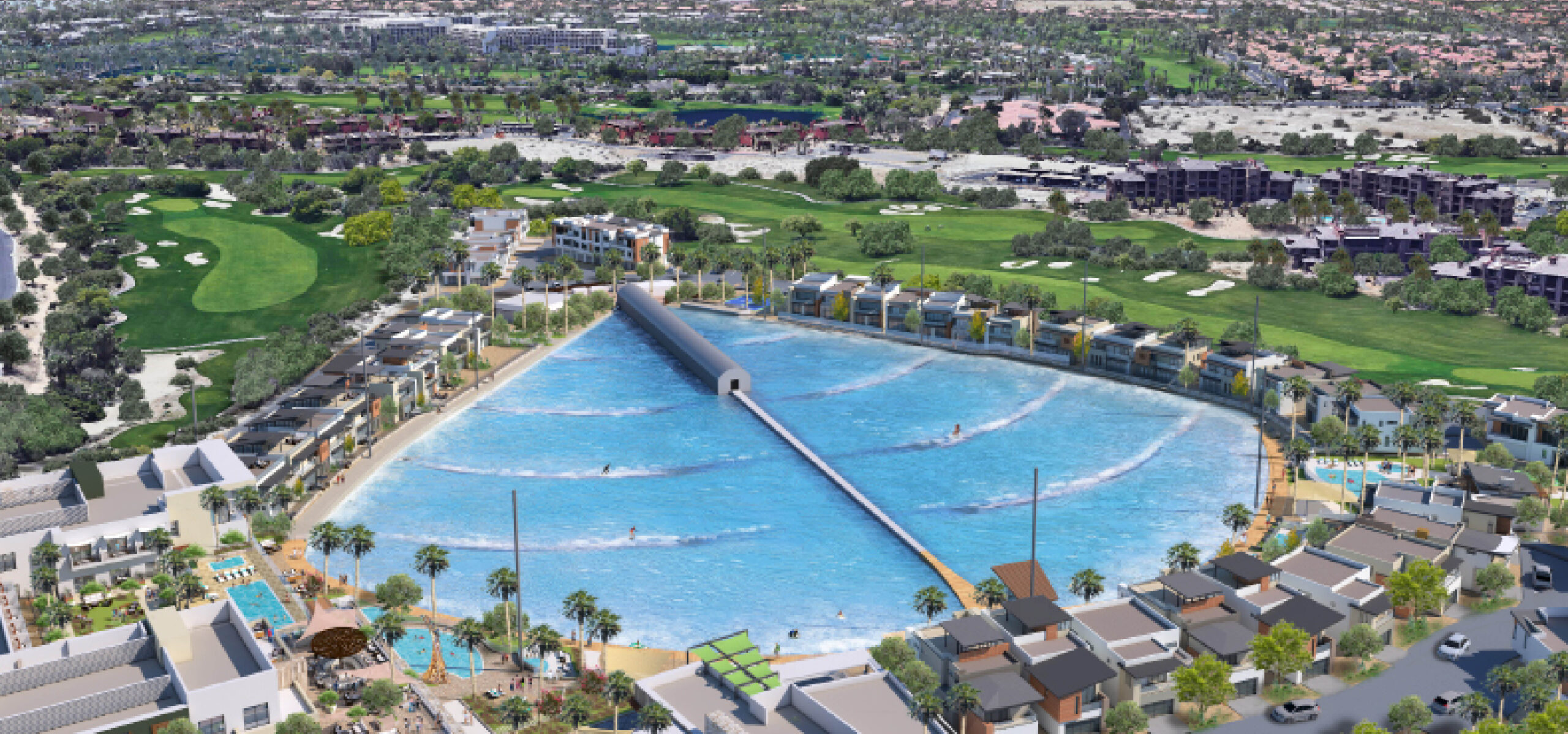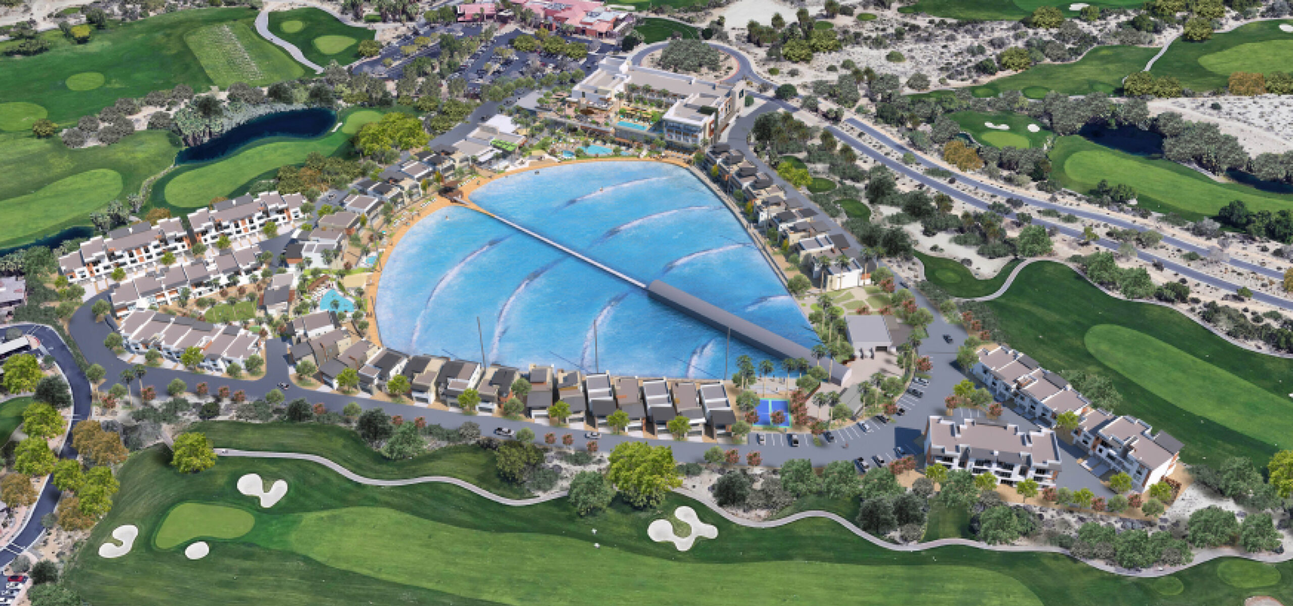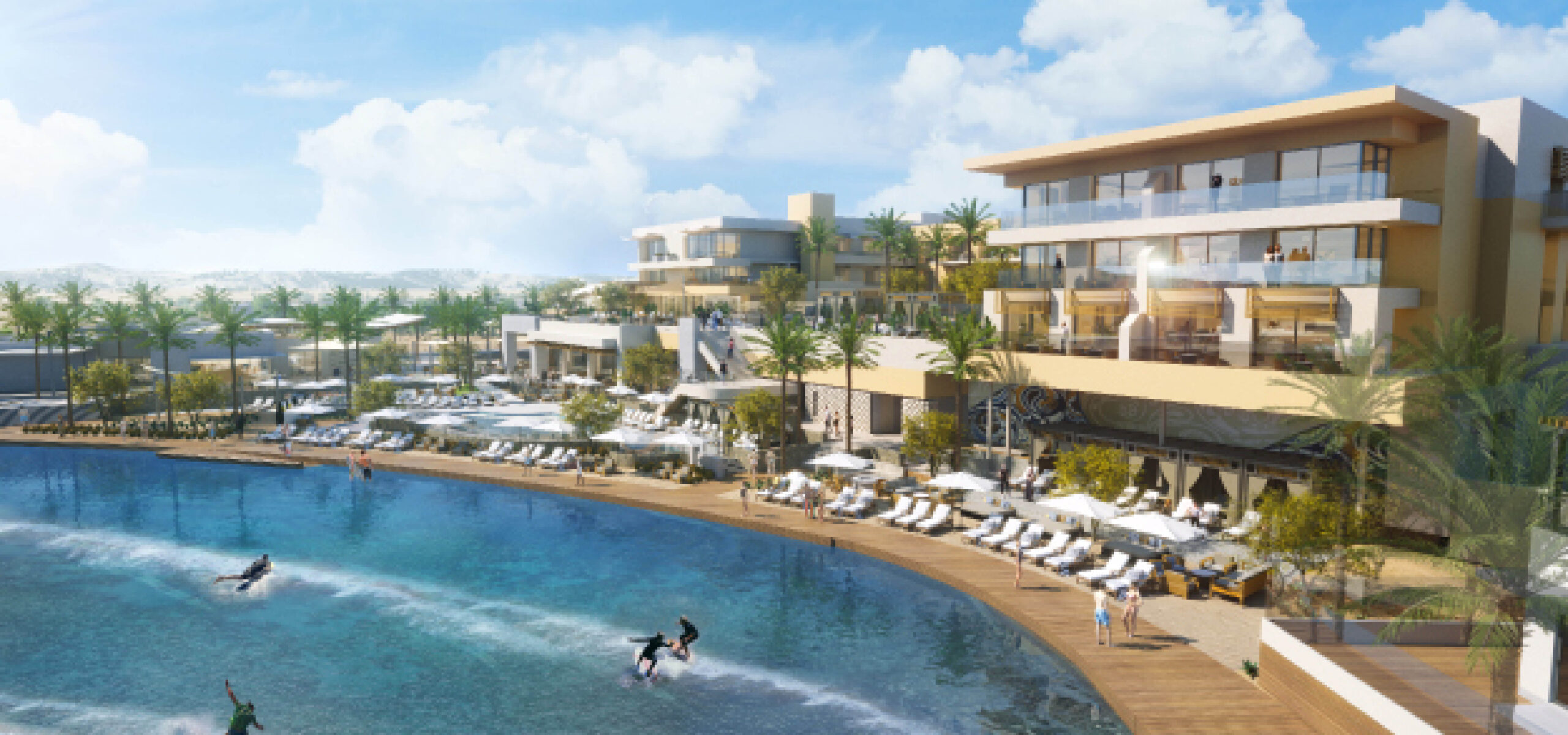 Rising across 17 acres in Palm Desert, this surf-anchored mixed-use destination brings together hospitality, recreation, retail, and residential in a vibrant, walkable environment. At its heart is a 5-acre surf lagoon, surrounded by a 92-key resort hotel, luxury vacation villas, and multifamily residences that embrace open design and indoor-outdoor living. Guests and residents can explore a network of boardwalks and amenity zones that include wellness facilities, fitness and yoga spaces, dining, and boutique retail. The synergy of uses creates an immersive experience, one that blends desert serenity with coastal energy to offer an unforgettable lifestyle destination rooted in connection and play.